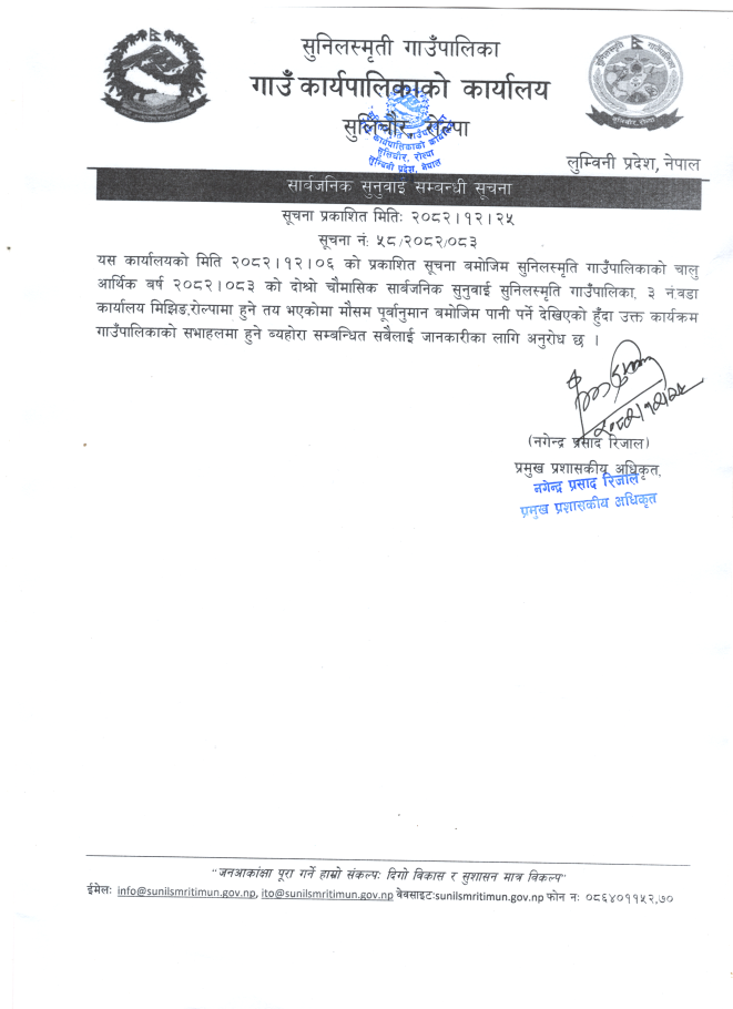 १२।२५ सार्बजनिक सुनुवाई सम्बन्धी सूचना ।