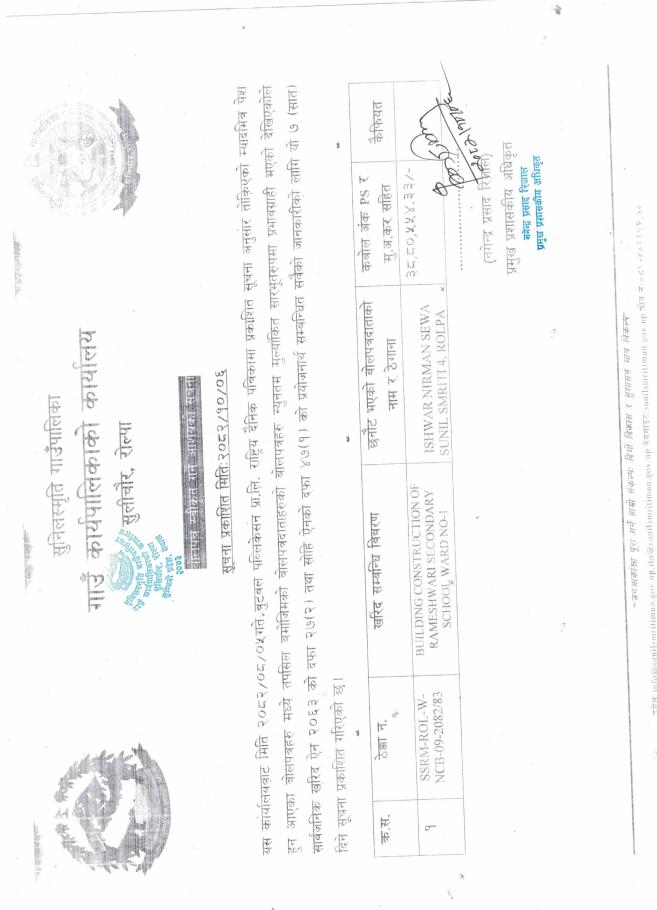 १०।०६ वोलपत्र स्वीकृत गर्ने आशयको सूचना ।